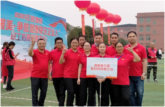2020年10月13日,县总工会、桃源高新区管委会和县工业和信息化局联合举办了桃源县首届“劳动最美·争做健康快乐企业人”职工拓展竞赛活动,为加强嘉力亚公司员工凝聚力和向心力,丰富活跃公司员工的文化体育生活,提升整体沟通和协调的精神与能力,湖南嘉力亚新材料有限公司积极响应号召,报名参加了本次活动。