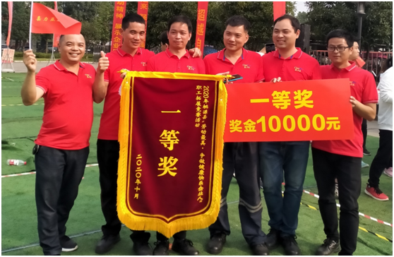 本次有来自全县的22家企业组成的职工代表队参加竞赛。共设团队脚步、鼓动人心、珠行千里、同心传球、力拔山河5个比赛项目。嘉力亚新材料代表队在公司各级领导和全体员工的支持下,在工会主席龚健喜的悉心指导下,在财务部总监胡振洪的认真组织下,领队黎单娟带领全体队员认真训练和及时总结,通过对人员站位、操作手法、服装穿戴等的调整,经过大家的积极努力和稳定发挥,终于超预期取得了2个单项成绩第一名,整体综合成绩第一名的好成绩。