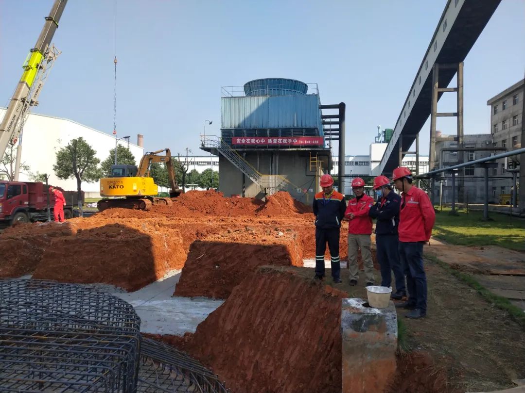 2020年10月11日上午,工地现场阳光明媚、彩旗飘飘。煅烧回转窑烟气脱硫脱硝除尘技改工程现场,施工人员正在利用晴好天气抢抓工期,施工队伍分工协作、忙而不乱,呈现一派如火如荼的景象。公司领导曹伟强、曾永辉来到施工现场指导督促工程建设,施工单位盐城兰丰、湖北二O八公司的相关负责人现场协调指挥,并介绍工程建设总体安排。随着国家环保政策法规的不断发展完善,铝用碳素阳极行业所执行的排放标准越来越严厉,为适应新标准,实现稳定达标排放,嘉力亚公司决定实施煅烧回转窑烟气脱硫脱硝除尘改造项目,对烟气进行有效治理,实现企业经济效益和环境效益的“双赢”。据悉,为加快项目建设进度,施工单位提前组织设备材料进场,并于10月6日正式开工,计划工期2个月,确保今年底前竣工投运。