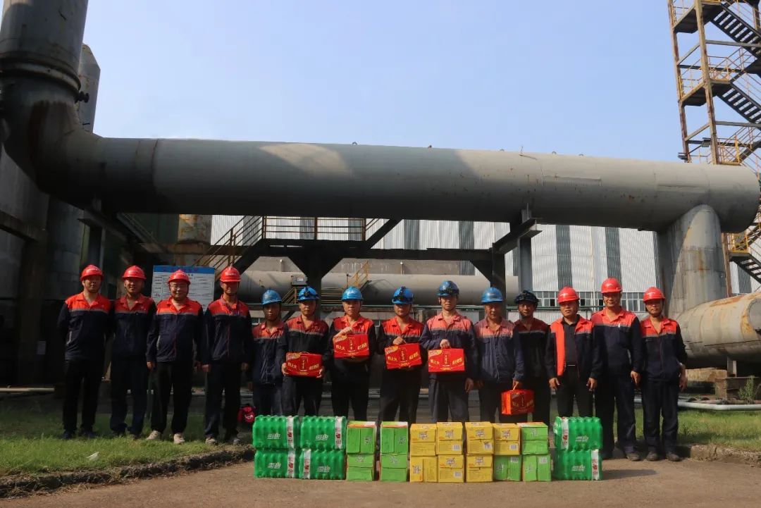 公司党支部书记、工会主席龚健喜,公司副总经理高峰等高管带领慰问组,先后前往余热车间、煅烧车间、综合车间、检修车间、成型车间、天车车间、焙烧车间、项目工地、质量管理科等一线场所,为坚守岗位的工作人员送上了王老吉、雪碧、冰红茶、绿茶等防暑降温物资。每到一处,慰问组都叮嘱大家注意防暑,在高温作业时注意劳逸结合,合理安排休息时间,做好自我防护,确保安全健康。