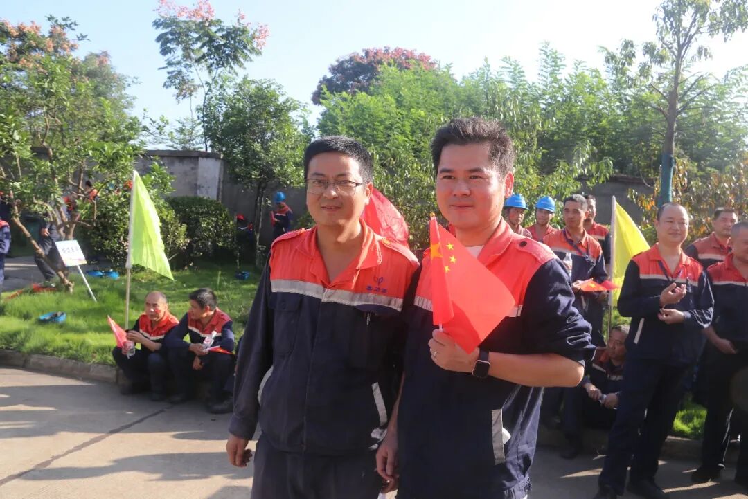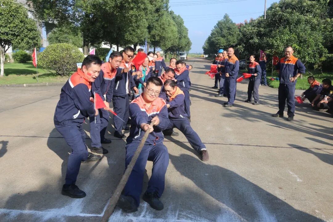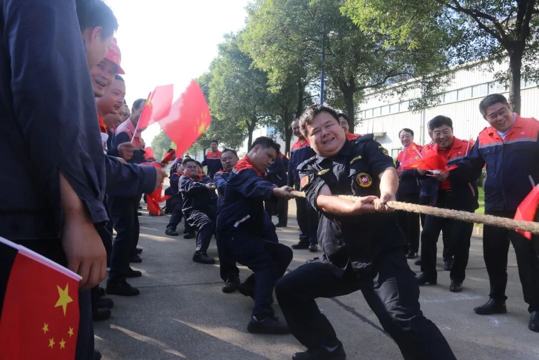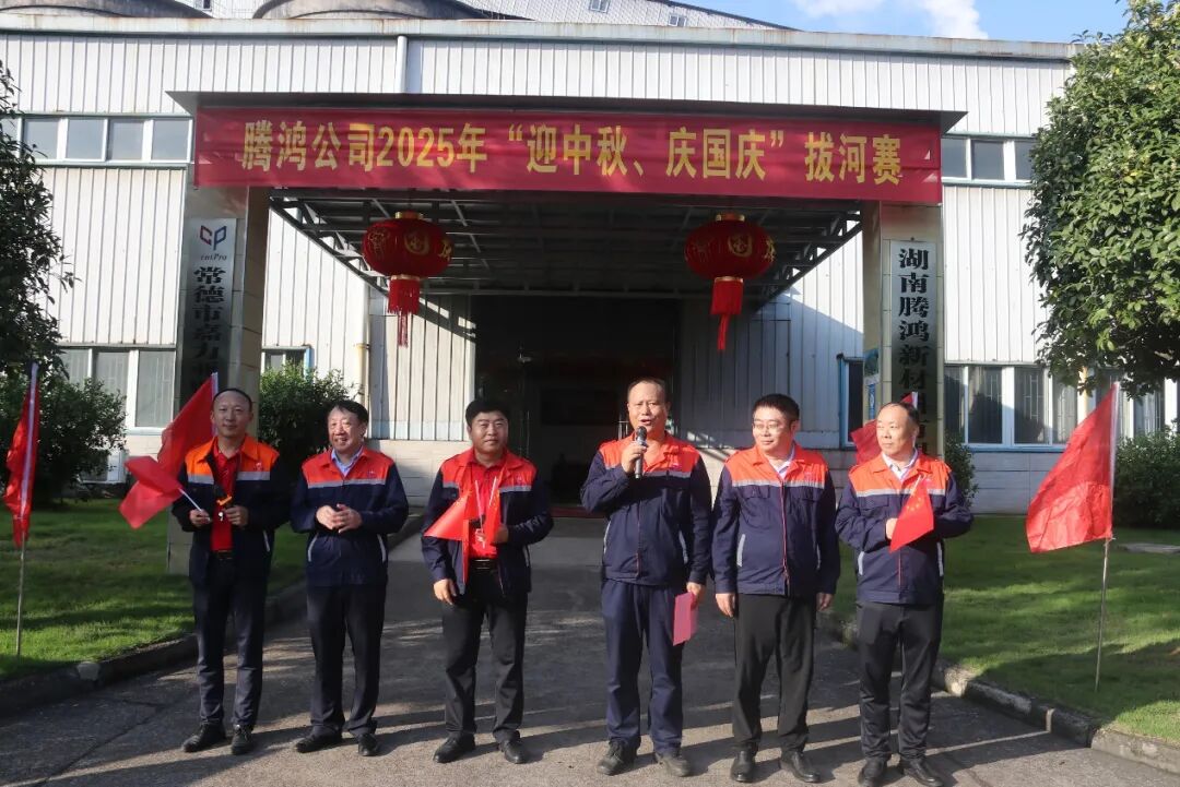 CHINA 国庆节 盛世华诞 举国同庆 副总经理高峰主持拔河赛 本次比赛有煅烧、成型、焙烧、天车、检修、综合+余热车间等六支队伍参加,行管部门与结对车间组合,每支队伍8人参赛,其中至少1名女员工。比赛以竞技之名搭协作之桥,旨在打破部门壁垒,增进相互沟通信任,强化“劲往一处使,心往一处聚”的团队精神,全面提升团队向心力、战斗力。赛场上,麻绳紧绷如弦,呐喊声震耳欲聋。各参赛队员肩并肩、脚抵脚,紧握绳索全力拼搏,场边啦啦队助威声浪此起彼伏,将比赛氛围一次次推向高潮。 主裁判风姿 副裁判风姿 煅烧车间赛场风姿 成型车间赛场风姿 焙烧车间赛场风姿 检修车间赛场风姿 天车车间赛场风姿 综合+余热车间联队赛场风姿 冠军队——天车车间 亚军队——焙烧车间 季军队——综合+余热车间联队 公司党支部书记、工会主席龚健喜作总结讲话 赛后,公司党支部书记、工会主席龚健喜讲话。他说,拔河比赛,比的是荣誉感,赛的是精神。比赛有胜负,精神无高低,每个队员都展示了强烈的集体荣誉感,都有夺取胜利的渴望,大家在赛场上全力以赴、顽强拼搏,充分展现了“不服输、敢争先”的团队精神,无论哪支队伍获胜,都是腾鸿的骄傲,希望大家胜不骄、败不馁,把赛场上的斗志转化为生产中的动力。拔河比赛,比的是凝聚力,赛的是激情。一根绳、一条心,当队员紧握绳索、脚踏实地、全力拼搏时,有人齐声呐喊,有人咬牙坚持,不抛弃、不放弃,深刻体现了心往一处想、劲往一处使的凝聚力。工作中,我们同样需要这种力量——面对艰巨任务,不推诿、不抱怨;遇到技术难题,敢突破、敢攻坚。今天的赛场,就是明天生产攻坚的战场,让我们把赛场上的激情,带回车间、带回班组、带回岗位。拔河比赛,比的是爆发力,赛的是健康。拔河是体力的较量,更是健康的比拼,看谁稳得住、看谁耐力强、看谁配合好,希望大家把赛场上的拼劲,也用在日常生活中,练就健康体魄,创造美好生活。目前,新煅烧、三焙技改项目基本完工投运,公司综合实力、市场竞争力再上新台阶;下一步,生活区建设也将紧锣密鼓地展开。腾鸿为我们提供了更大的舞台,让我们与腾鸿一道共同努力、不断向前,推动腾鸿发展更红火、大家生活更幸福!